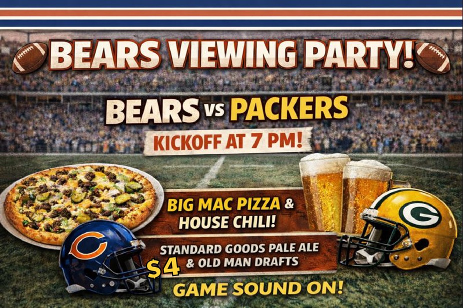 🍕 Tailgate Eats: House Chili & our fan-favorite Big Mac Pizza 🍺 Game Day Drink Specials: • $4 Standard Goods Pale Ale (draft) • $4 Old Man Drafts
